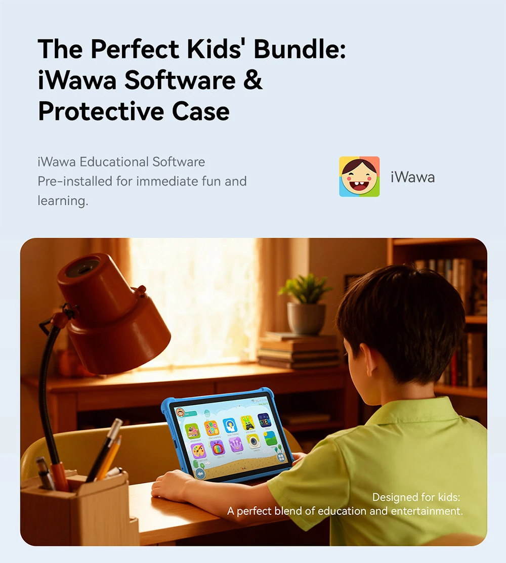 A készülék lelke a UNISOC T310 négymagos processzora, amely 3GB memóriával és 64GB tárhellyel dolgozik, így gördülékenyen futtatja a tanulást segítő alkalmazásokat, meséket és interaktív oktatóprogramokat. A tárhely microSD kártyával tovább bővíthető, így akár több ezer kép, videó és alkalmazás is elfér rajta. A gyermekek számára előnyös funkció a beépített iWawa vagy egyéb szülői felügyeleti megoldások támogatása, amelyekkel könnyen szabályozható a használati idő és a tartalom.