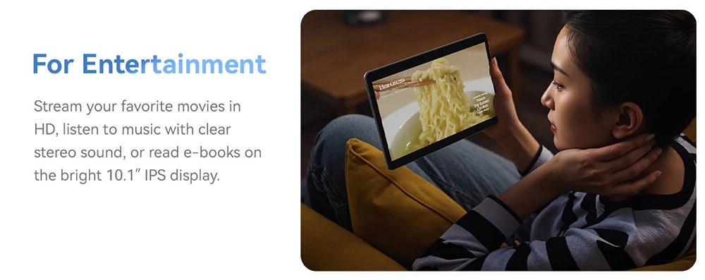 A táblagép 10,1 hüvelykes, 1280×800 felbontású IPS kijelzőt kapott. A 300 nites fényerővel rendelkező panel elegendő mesenézéshez, rajzoláshoz vagy online tanuláshoz.