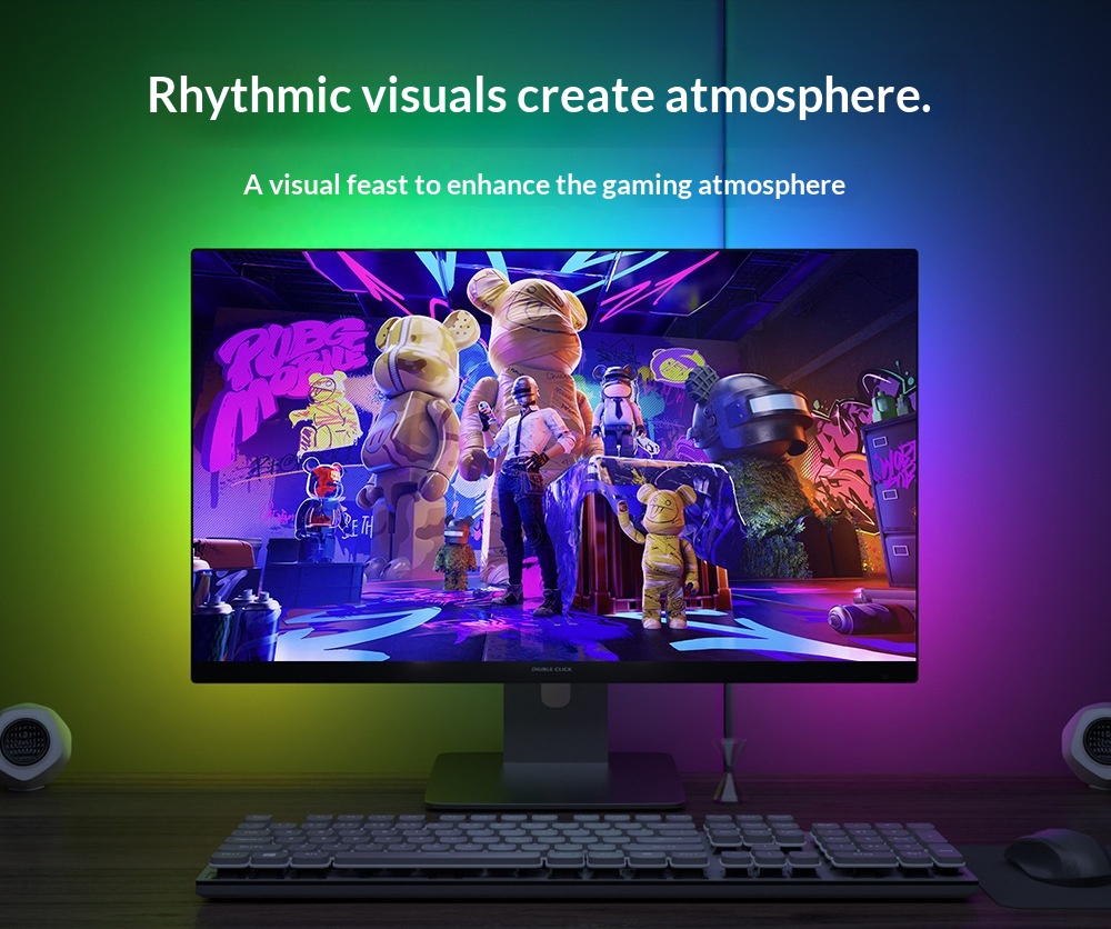 A „screen sync” és „music sync” módok a termék szíve-lelke. Előbbi a képernyőn megjelenő színekhez és hangulatokhoz igazítja a háttérfény tónusait, ezzel vizuálisan „kitágítja” a képet a monitoron túlra az USB-s csatlakozás segítségével. Utóbbi a zenére, játékhangeffektekre vagy filmek hanganyagára reagál. A ritmushoz és hangerőhöz igazodva pulzál, váltogatja a színeket és a fény intenzitását, így a látvány közvetlenül kapcsolódik a hangélményhez.