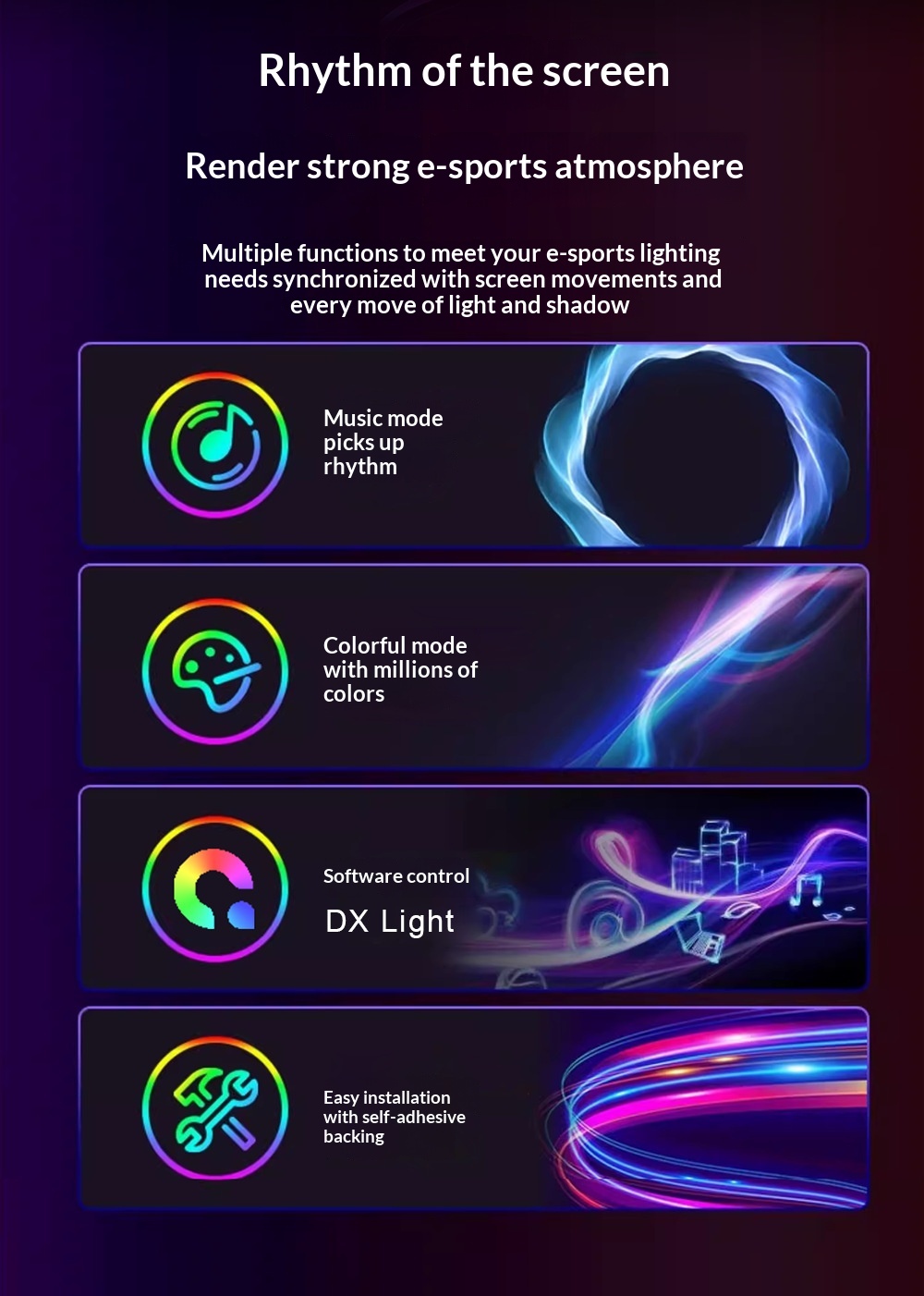Célja, hogy a képernyőn történő eseményeket és a lejátszott zenét látványos, dinamikus fényeffektekké fordítani, így egységes atmoszférát teremteni munka, tanulás vagy játék közben.