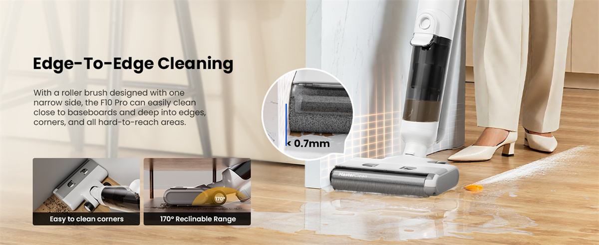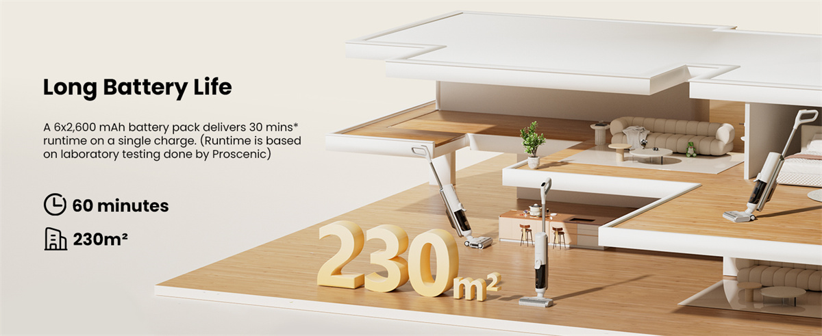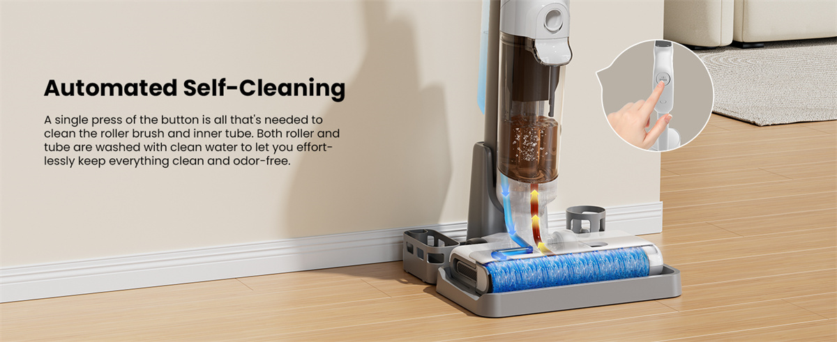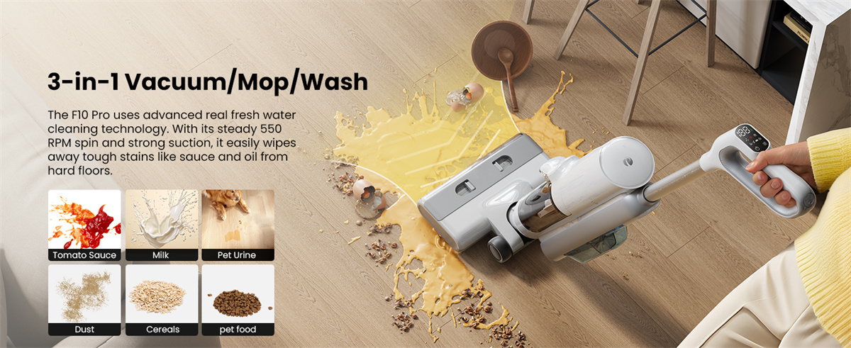 A Proscenic F10 Ultra a mindennapi takarítást gyors, egy lépéses feladattá alakítja. Egyszerre porszívóz, felmos és mossa a hengert, így nem kell eszközt cserélni, sem külön köröket futni a makacs foltok miatt.