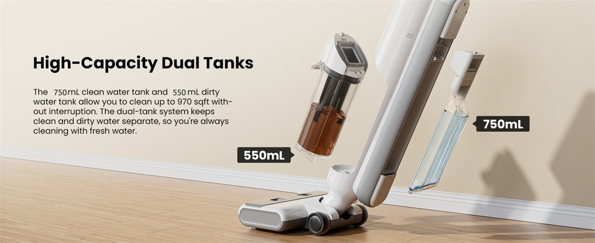A higiénia kulcsa az 1,3 literes, kétkamrás víztartály. Külön, 750 milliliteres friss és 550 milliliteres szennyvíz tartály gondoskodik arról, hogy a padlóra mindig tiszta víz kerüljön. A gombnyomásos öntisztítás a hengert és a csőrendszert is átöblíti, a kéz érintése nélkül távolítva el a koszt és a hajszálakat. A saját meghajtású (önjáró) rendszer előre lendíti a készüléket, így hosszabb takarításnál is könnyed marad az oda-vissza tologatása. A speciális szélső kefe „fal melletti” takarítása a szegélyeknél és a sarkoknál is hatásos, minimális holtteret hagyva.