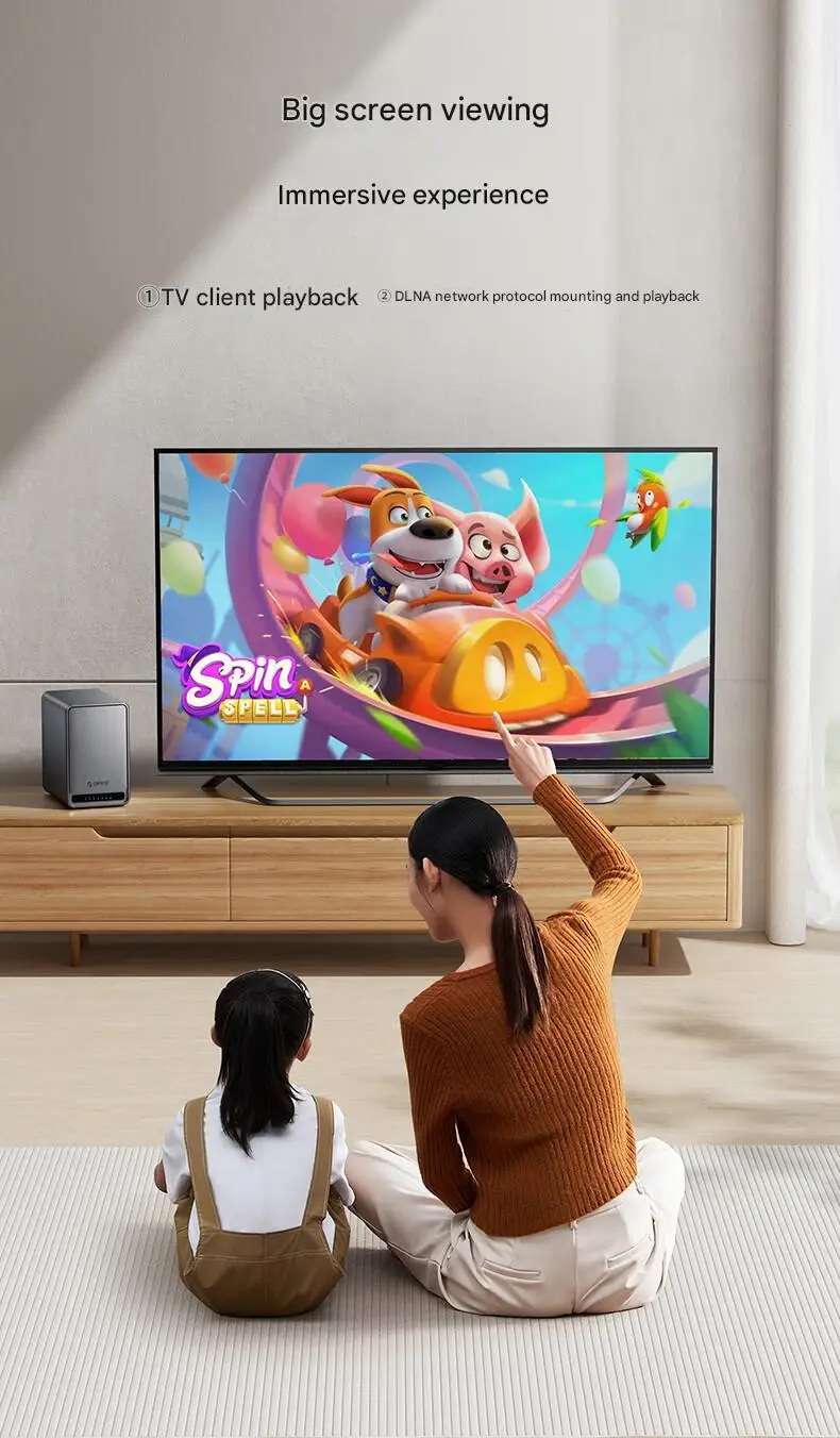 Két meghajtórekeszével elegendő helyet biztosít a fotók, videók, dokumentumok és fájlok központosított tárolására, miközben a hozzáférés továbbra is egyszerű marad otthonról és útközben egyaránt.