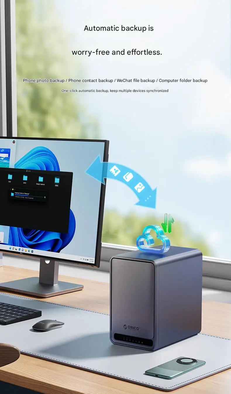 A mindennapi használatot az ORICO saját Weline alkalmazása teszi majd gördülékennyé. A NAS távoli elérése, a tartalmak feltöltése, rendszerezése, megosztása és deduplikálása néhány érintéssel megoldható mobilról és számítógépről. A rendszer kifejezetten privát felhős üzemre van hangolva, így a külső szolgáltatóktól független, helyi kontroll mellett biztosít globális elérhetőséget. A gyártó SDVN technológiával egészíti ki a platformot, amely titkosított adatkapcsolatot és a személyes adatok védelmét szolgálja, ami ez különösen fontos, ha távolról, nyilvános hálózatok felől éri el a tárhelyet.