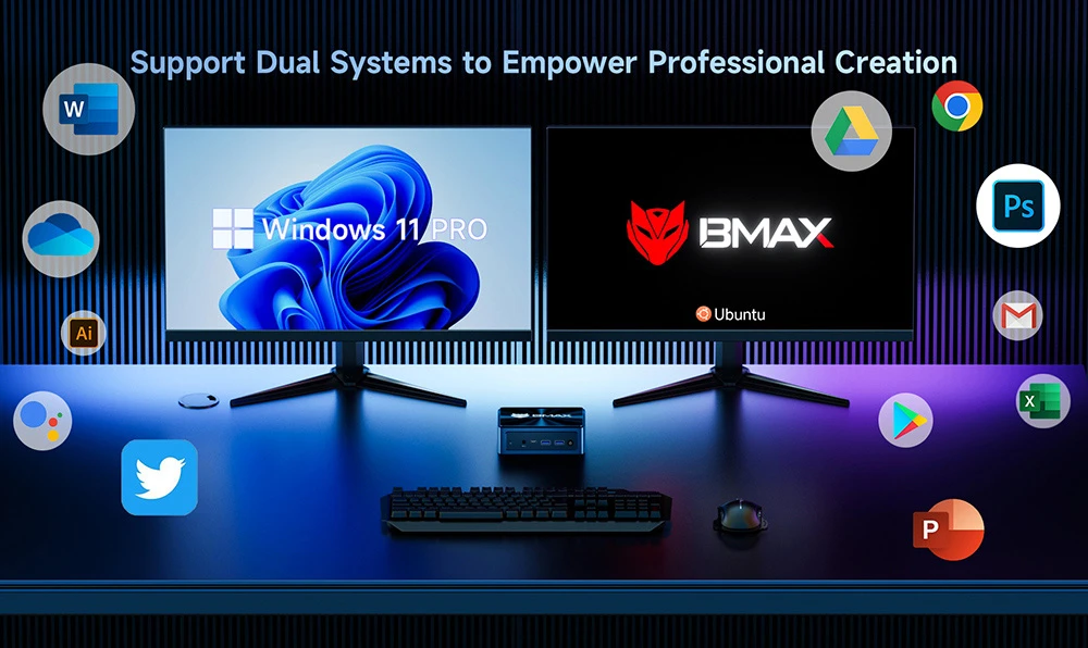 A BMAX B11 Power ideális választás fejlesztőknek, tartalomkészítőknek, AI‑alkalmazásokkal dolgozóknak és mindenkinek, akinek egy rendkívül erős, mégis halk és kisméretű PC‑re van szüksége. A Core Ultra architektúra, az NPU‑gyorsítás, az Arc grafika és a bőséges memóriakészlet együtt olyan teljesítményt kínál, amely korábban csak jóval nagyobb torony gépekben volt elérhető.