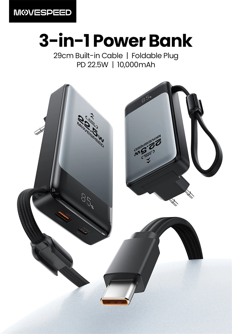 A konstrukció lényege, hogy egyetlen eszközzel oldod meg a „fali adapter + power bank + kábel” triót, így kevesebb tárggyal indulsz útnak, és mindig lesz vésztöltésed – akár a reptéri váróban, akár egy munkahelyi tárgyalóban talál rád a lemerülés.